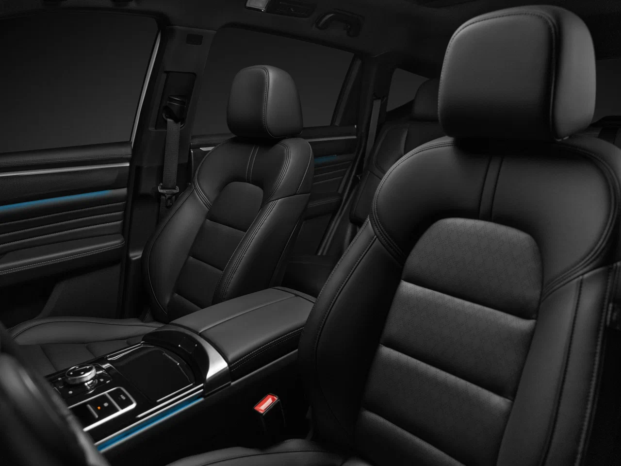 Центральная консоль с мягким подлокотником, с черным глянцевым пластиком сверху